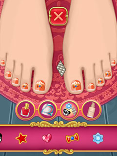 Help Anna run her pedicure salon in this fun makeover game! Anna’s Pedicure is not only one of the best makeover games but it also features Anna. Follow the in-game instructions to give Anna’s customer the best pedicure ever. Removing the old nail polish, clipping and trimming the nails then applying hand lotion are all part of this exciting and educational game. With this preparation in place, you can now create your own nail design and choose from a wide range of different colors, patterns and even apply beautiful accessories like diamonds to the nails. Create as many designs as you want and show your friends your wonderful sense of style! Play Anna’s Pedicure now for free and experience one of the best makeover games!